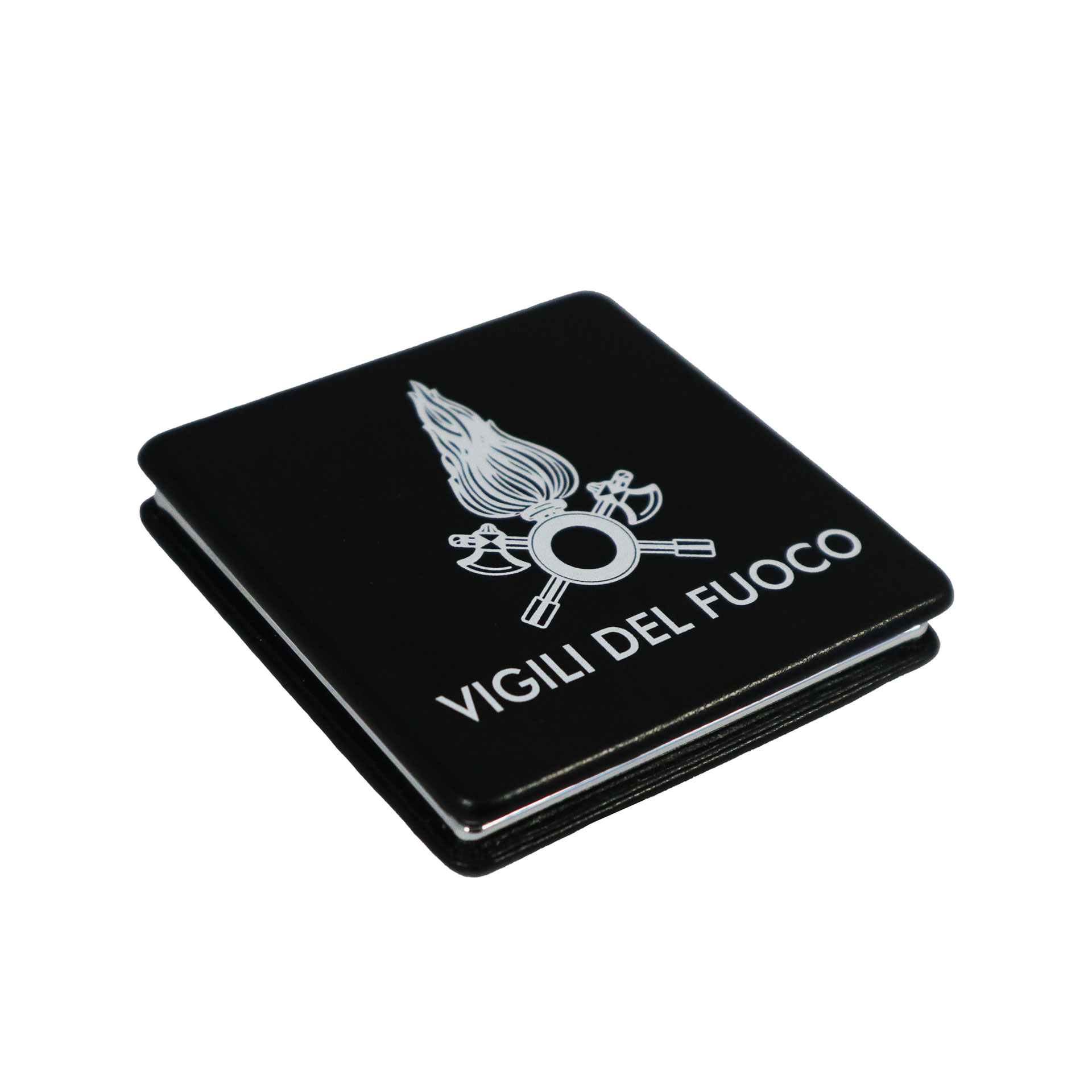 SPECCHIETTO DA BORSA VIGILI DEL FUOCO EFFETTO GOMMATO 5.5X5.5 CM