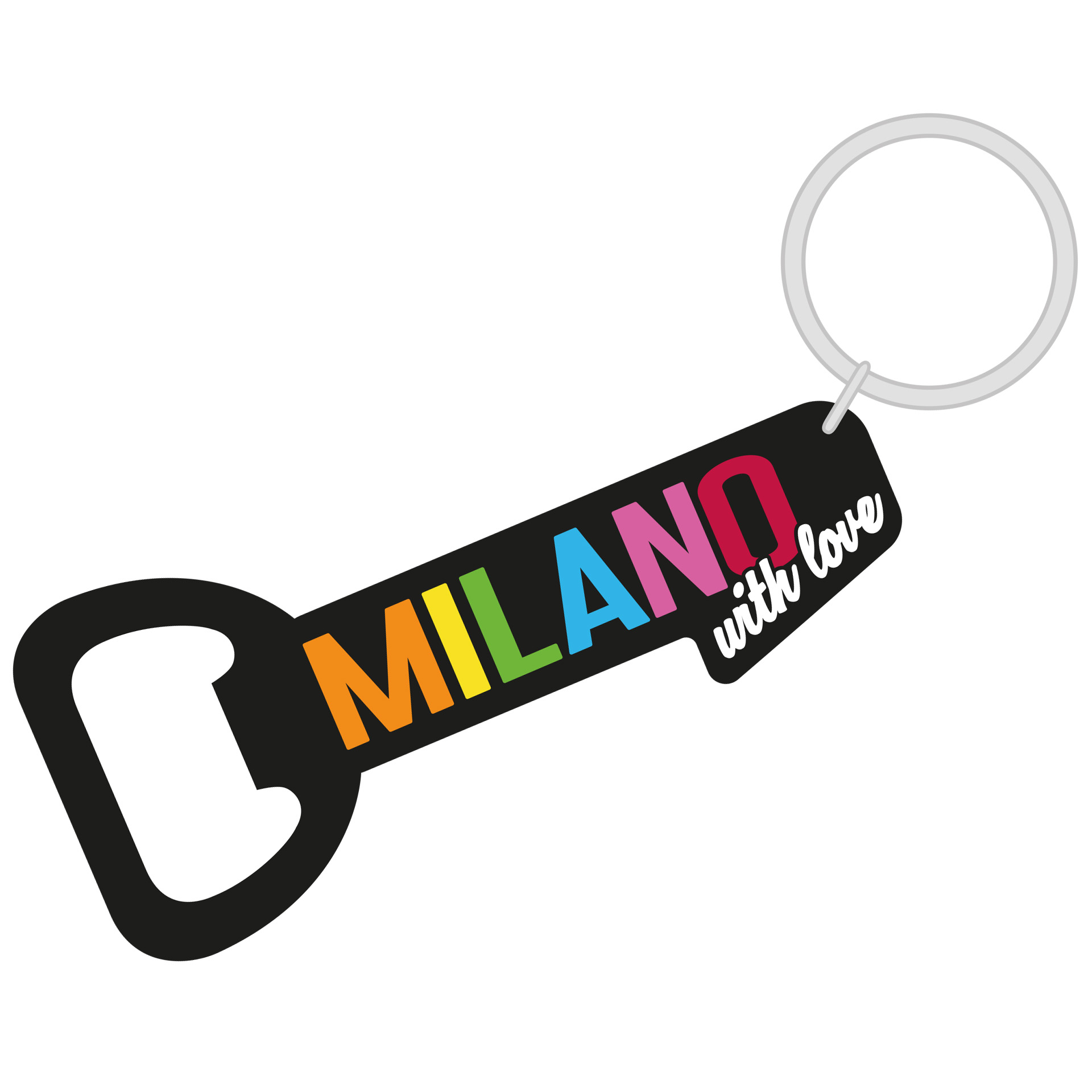 APRIBOTTIGLIE IN METALLO NERO E SMALTATURE SCRITTA MILANO WITH LOVE