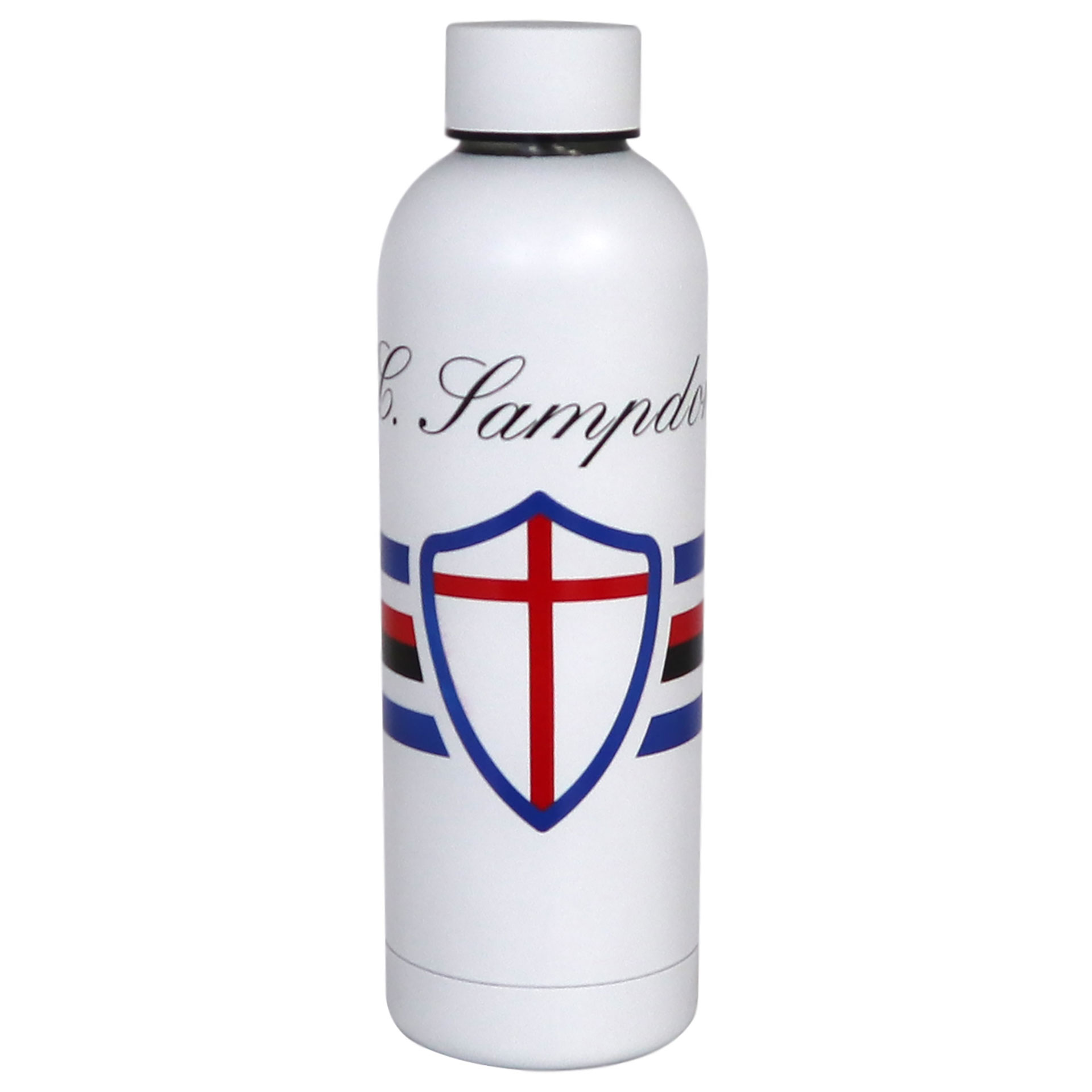 Borraccia Termica Bianca In Acciaio Inox Scudo Sampdoria 500ml con la croce di San Giorgio, originariamente il tradizionale vessillo della squadra di Genova.