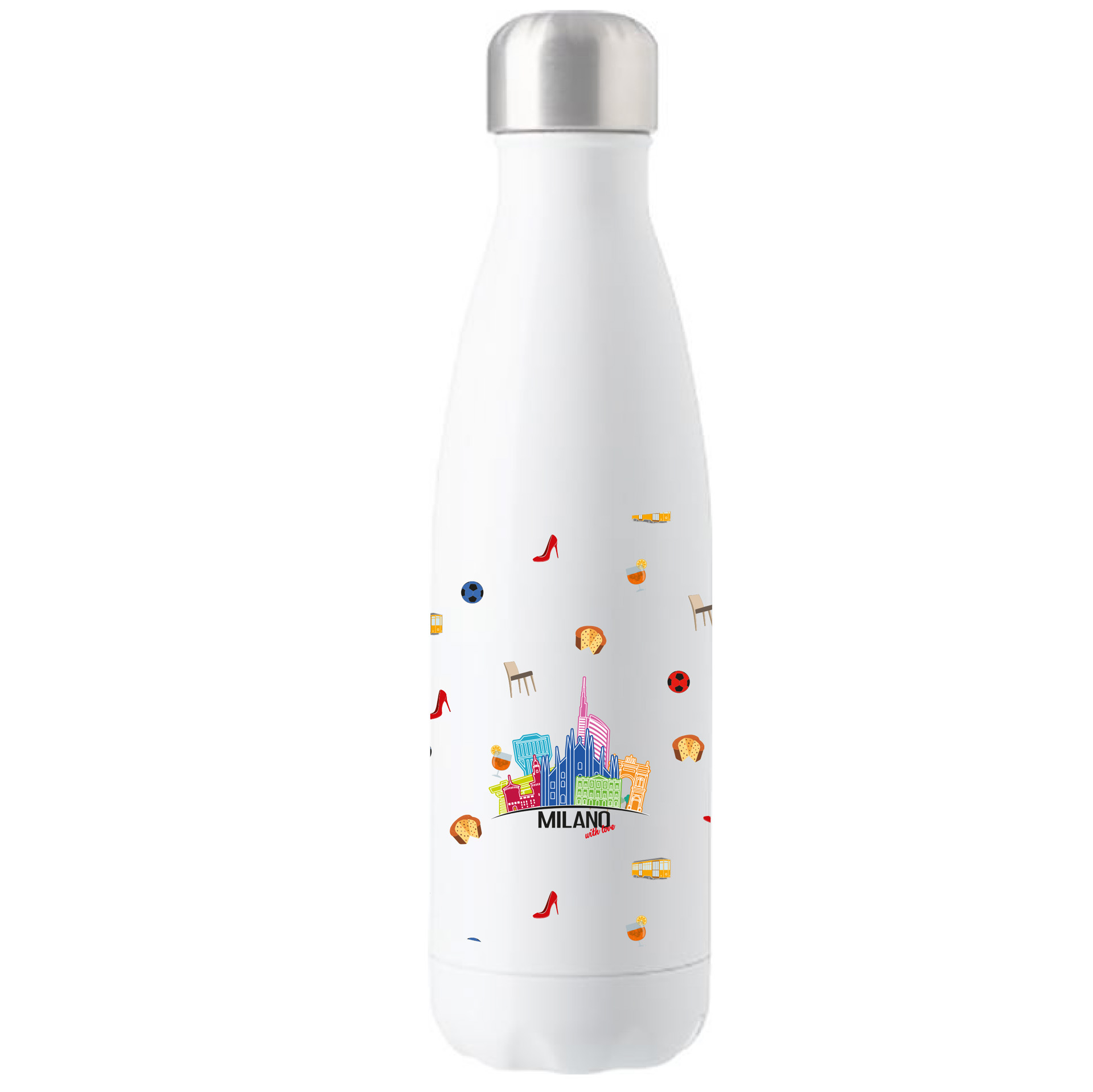 BORRACCIA BIANCA IN ACCIAIO INOX DOPPIA PARETE 500 ML MILANO WITH LOVE