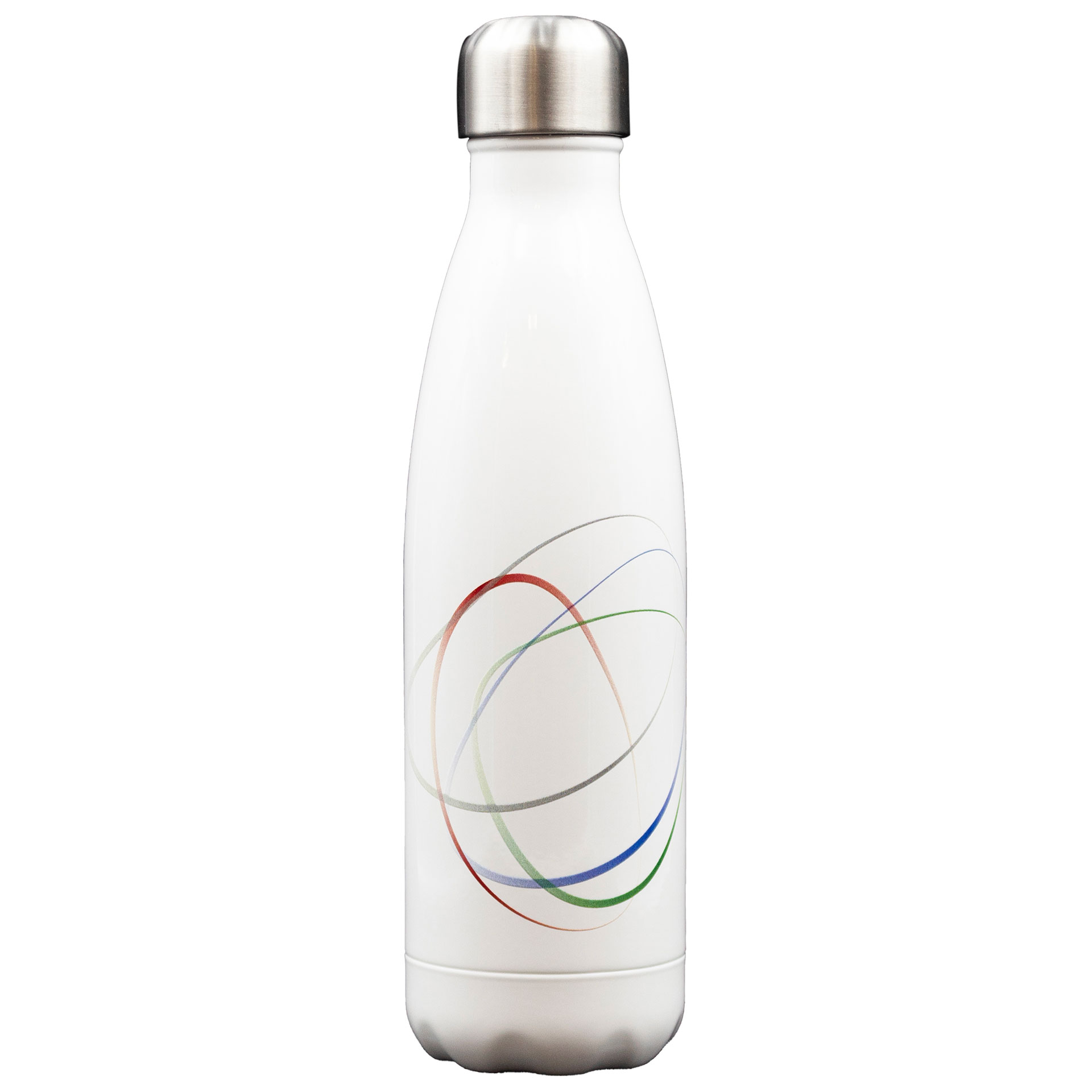 BORRACCIA ITALIATEAM BIANCA TERMICA IN ACCIAIO 500 ML ALTEZZA 26 CM TAPPO ARGENTO LOGHI PARALYMPIC EMBLEMA ITALIA PARALYMPIC TEAM COLORATI RETRO CON LINEE SFUMATE