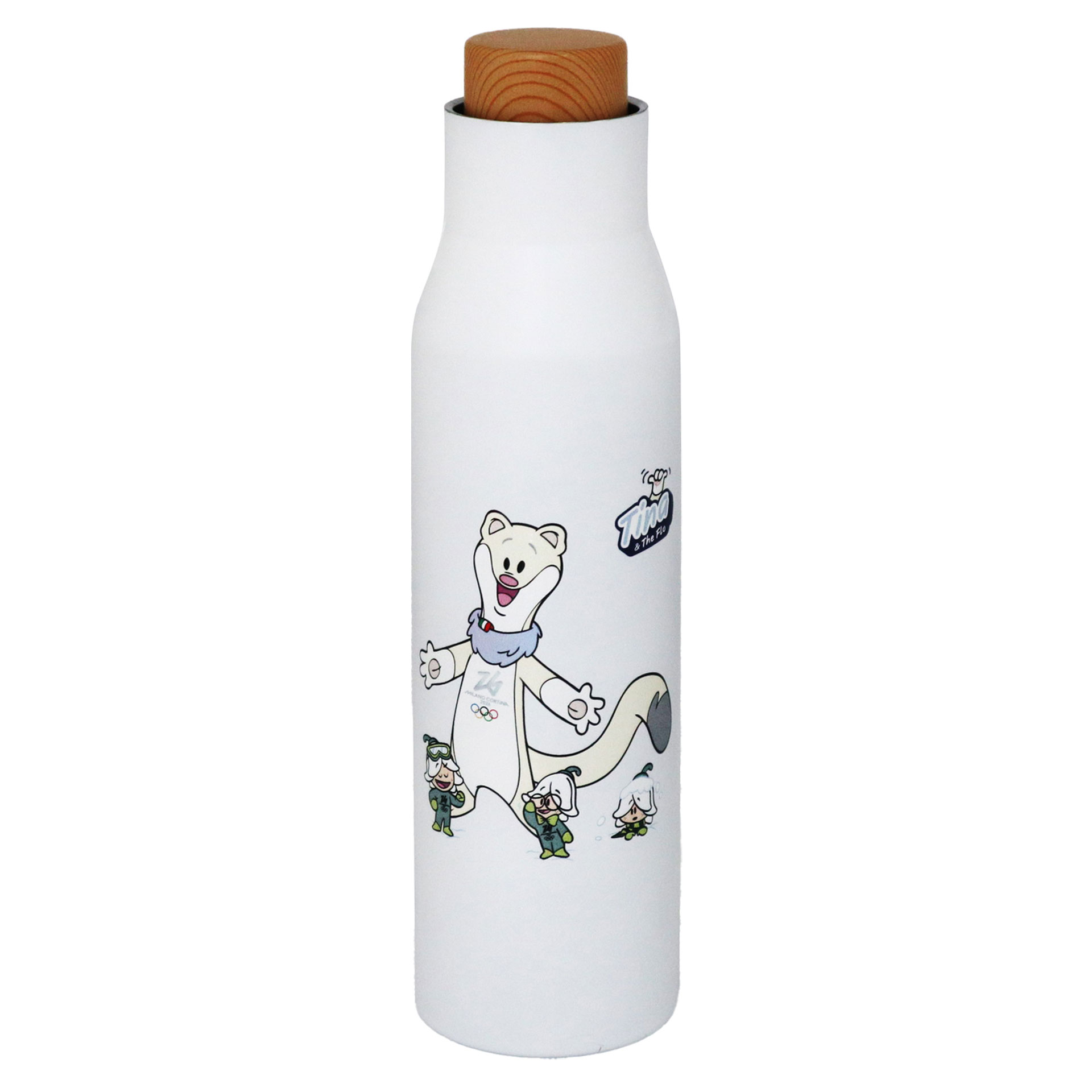BORRACCIA OLIMPIADI MILANO CORTINA 2026 BIANCA TERMICA IN ACCIAIO INOX 304 DOPPIA PARETE TAPPO IN PLASTICA CON EFFETTO BAMB? 500 ML DIAMETRO 69 MM LOGO OLYMPIC MASCOT TINA COLORATO 5 CERCHI SU FONDO BIANCO THE FLO