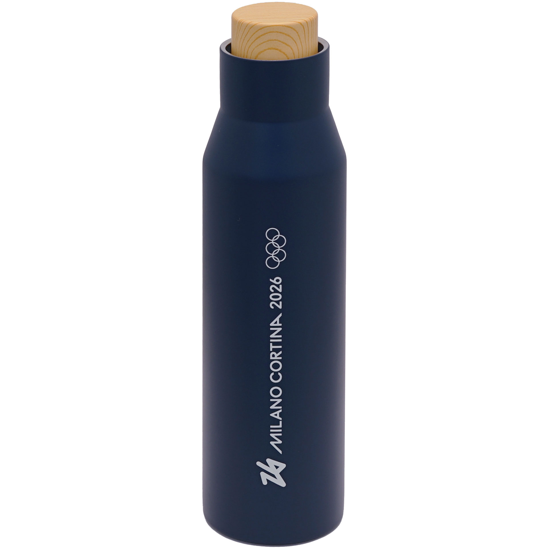 BORRACCIA OLIMPIADI MILANO CORTINA 2026 BLU TERMICA IN ACCIAIO INOX 304 RICICLATO DOPPIA PARETE 500 ML TAPPO IN PLASTICA CON EFFETTO BAMB? 69 MM LOGO OLYMPIC EMBLEMA MONOCROMATICO 5 CERCHI SU FONDO BLU
