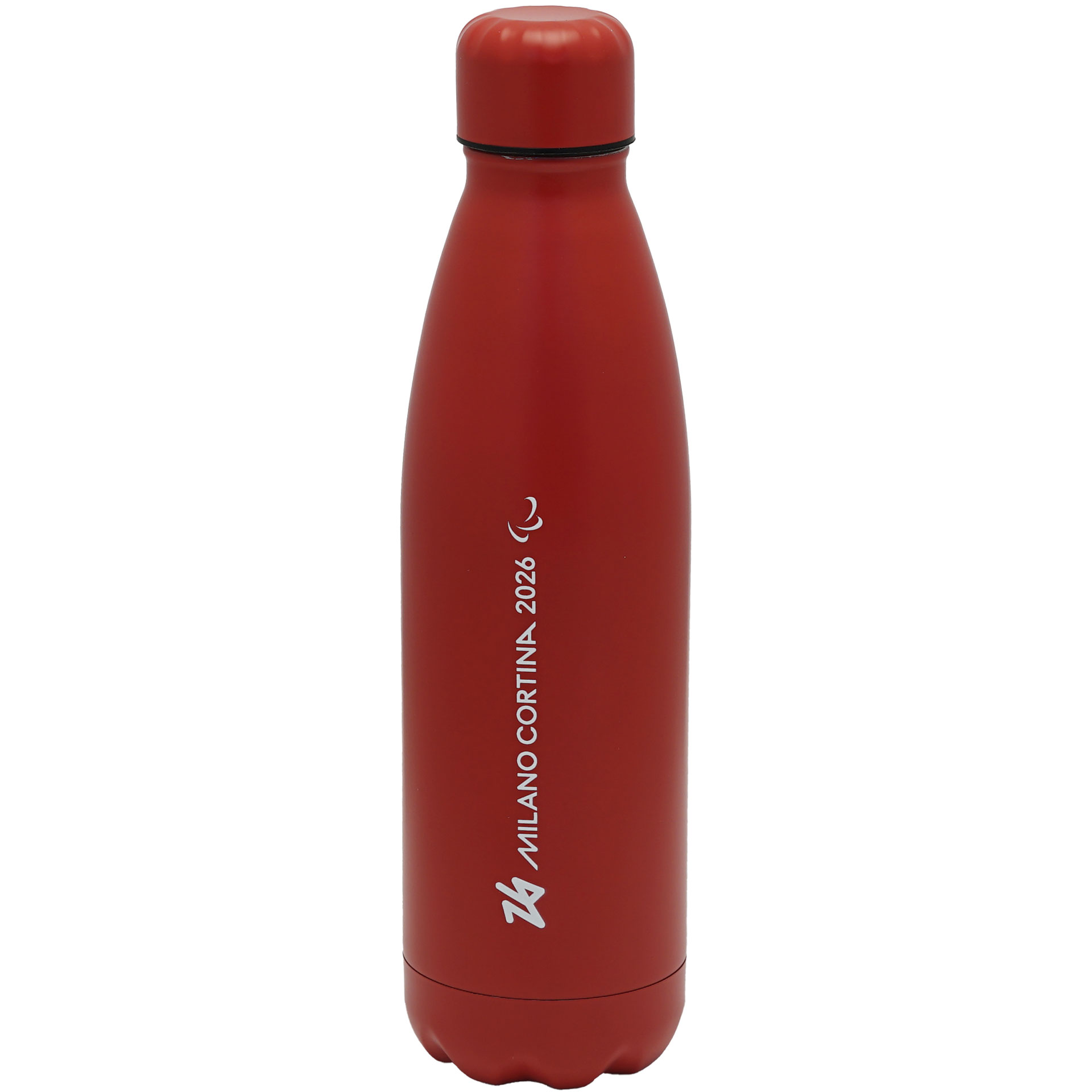 BORRACCIA OLIMPIADI MILANO CORTINA 2026 BORDEAUX TERMICA IN ACCIAIO INOX 304 ESTERNO ACCIAIO INOX 201 DOPPIA PARETE FINITURA OPACA 500 ML DIAMETRO 70 MM LOGO PARALYMPIC EMBLEMA MONOCROMATICO SU FONDO BORDEAUX