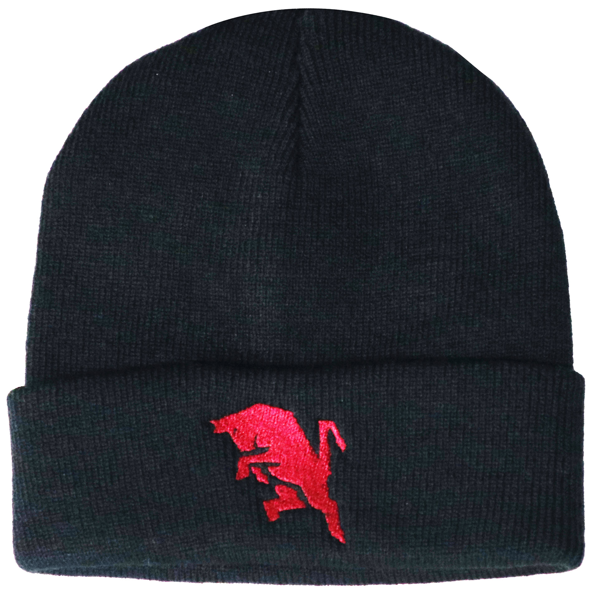 CAPPELLINO ACRICLICO NERO RICAMATO CON TORO GRANATA