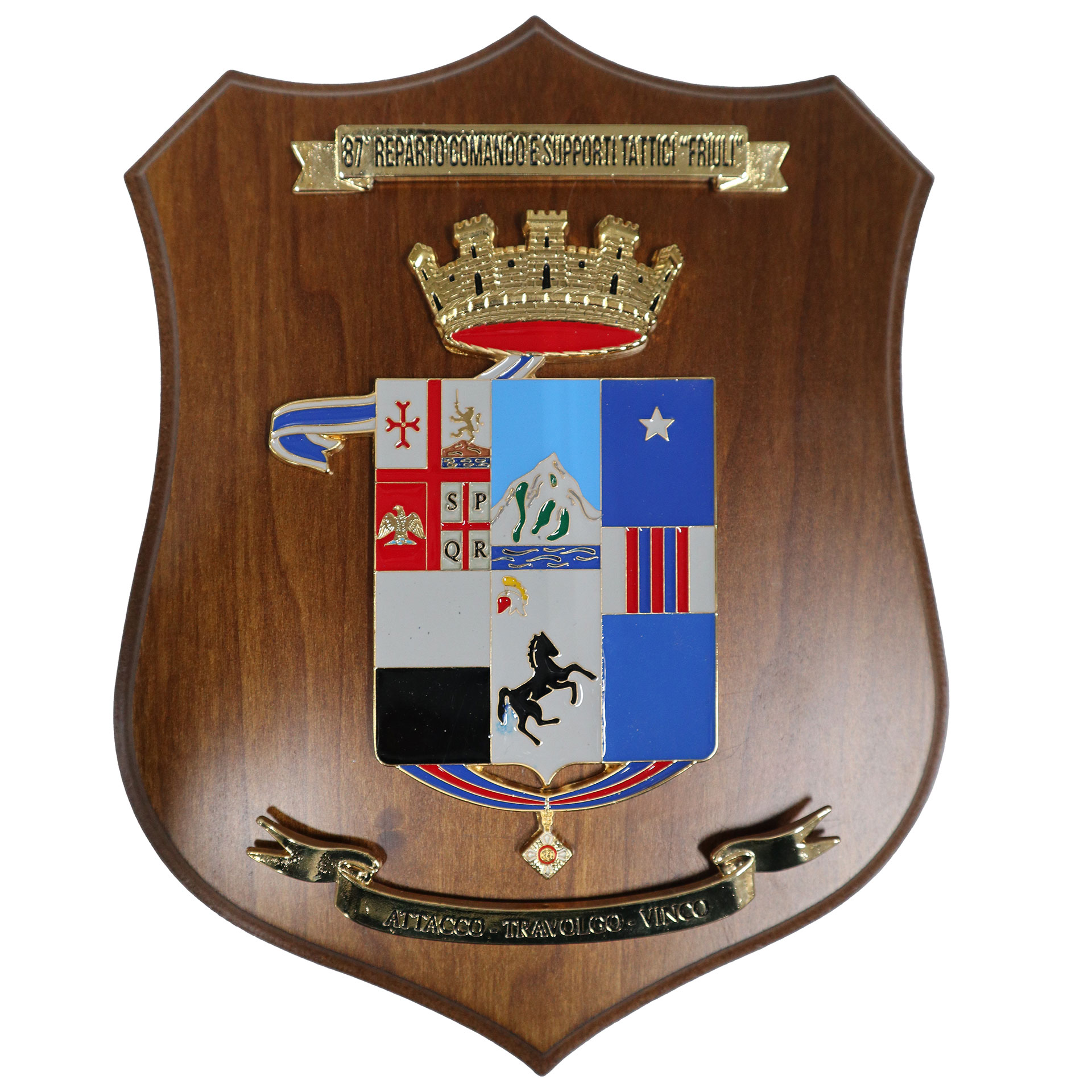 CREST IN METALLO SMALTATO BASE LEGNO 22,5X17,5CM 87 REPARTO COMANDO E SUPPORTI TATTICI FRIULI