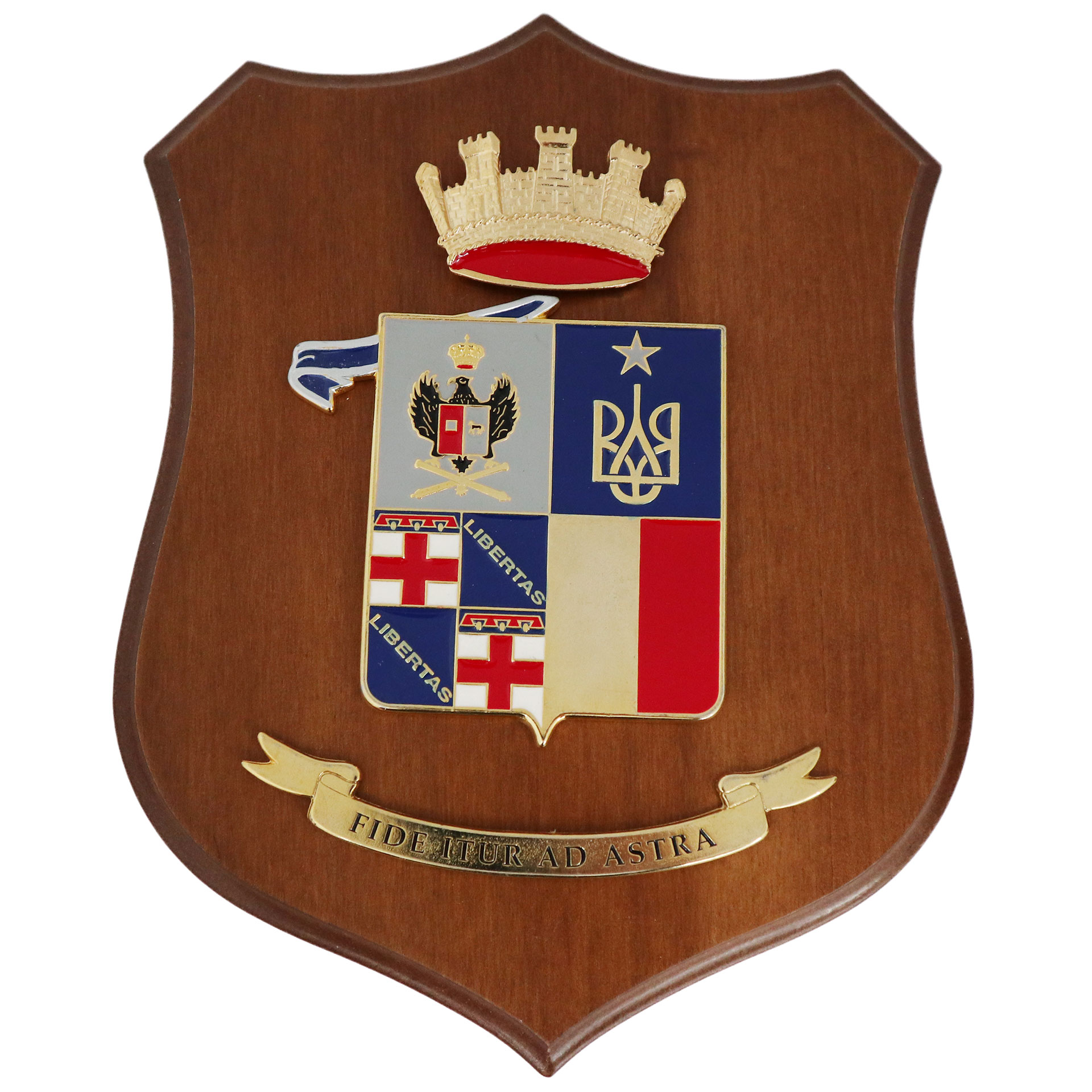 CREST IN METALLO SMALTATO BASE LEGNO 22,5X17,5CM 121 RGT ART.CONTRAER.RA