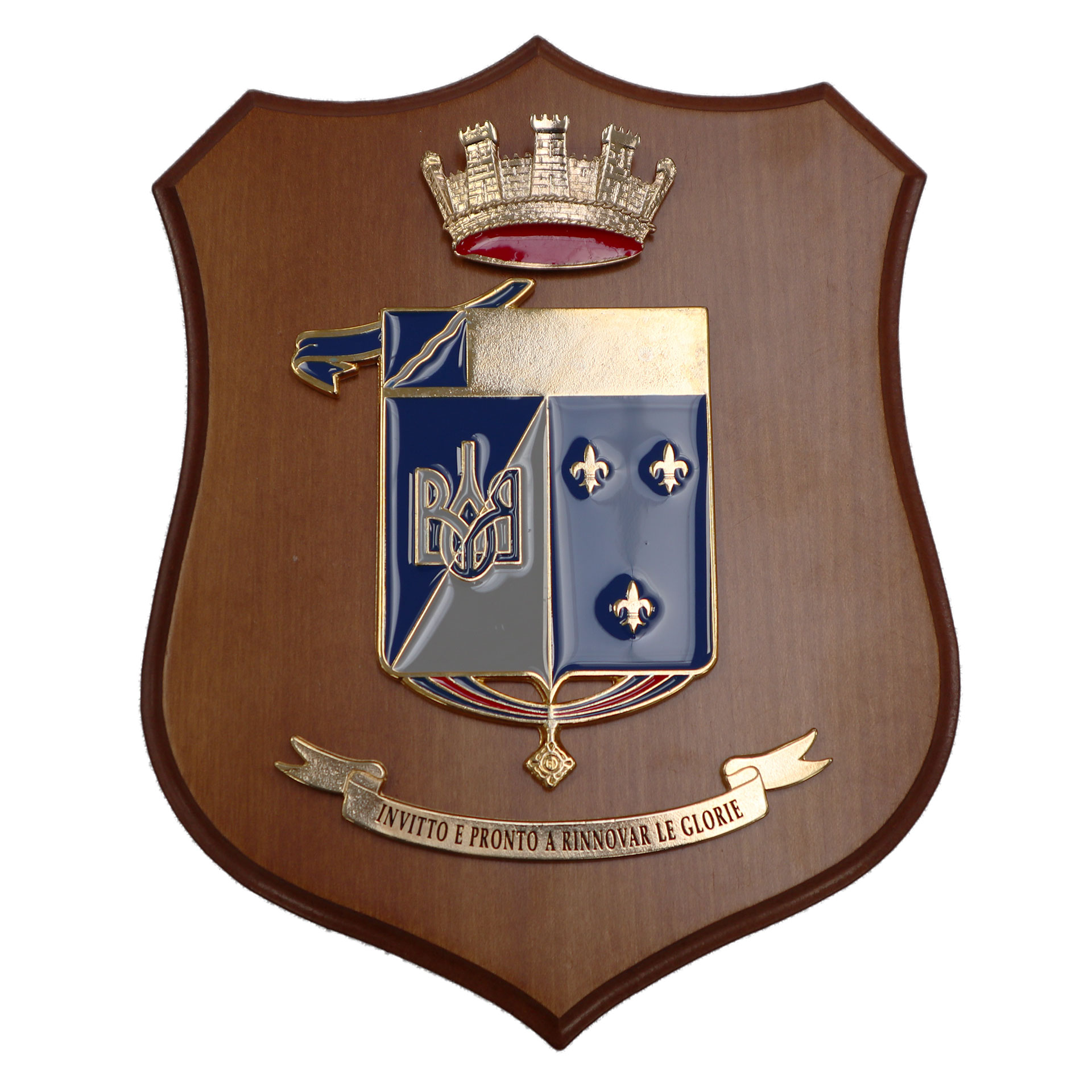 CREST IN METALLO SMALTATO BASE LEGNO 22,5X17,5CM 18 RGT BERSAGLIERI