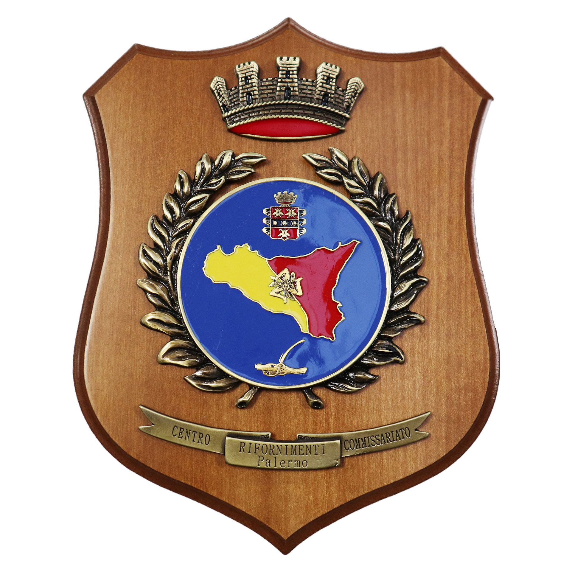 CREST IN METALLO SMALTATO LEGNO CL3 22 X 17 CM CENTRO RIFORNIMENTI COMMISSARIATO PALERMO