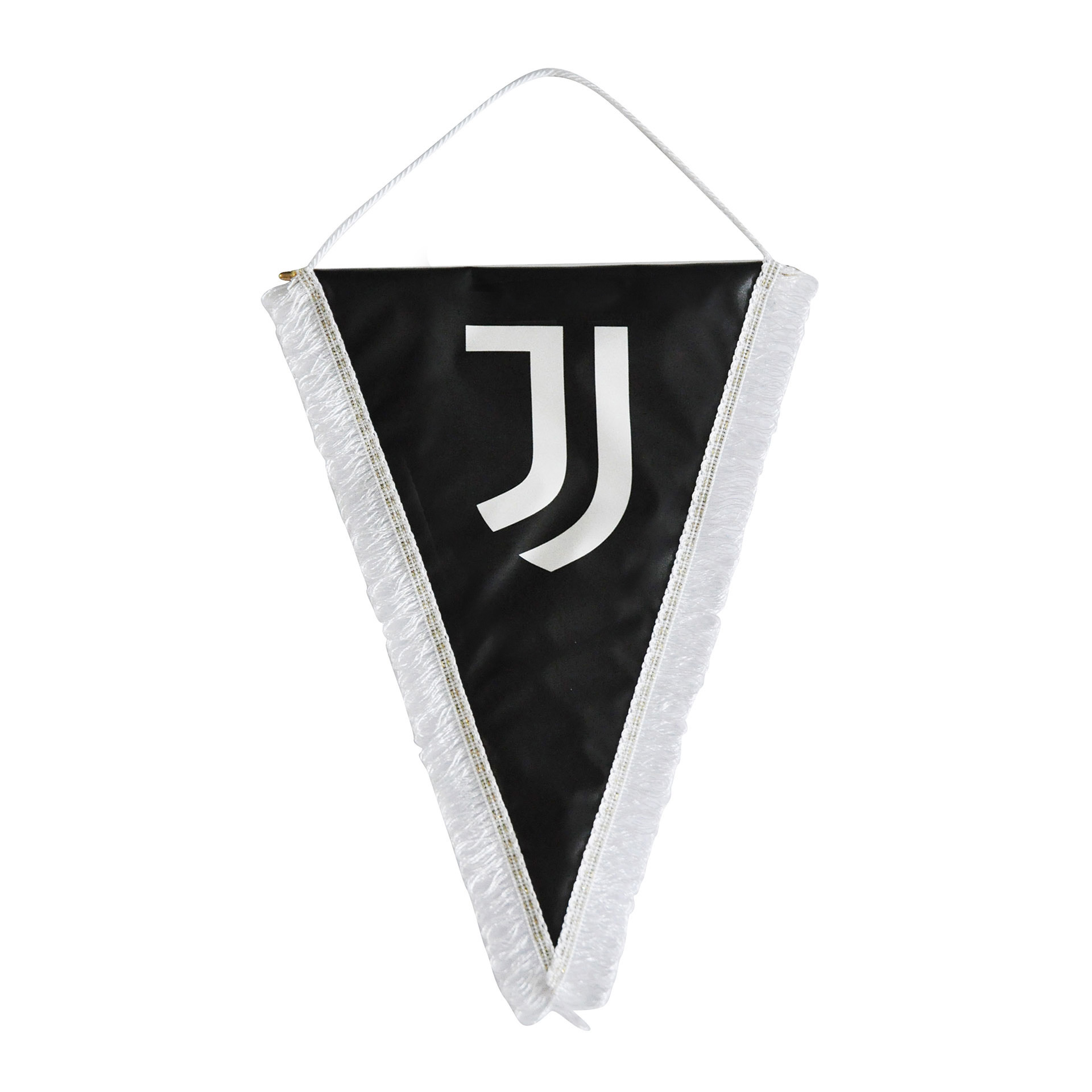 Gagliardetto triangolare nero e a frange bianche con logo ufficiale Juventus FC. Misura media. DIMENSIONI: 20x28 cm