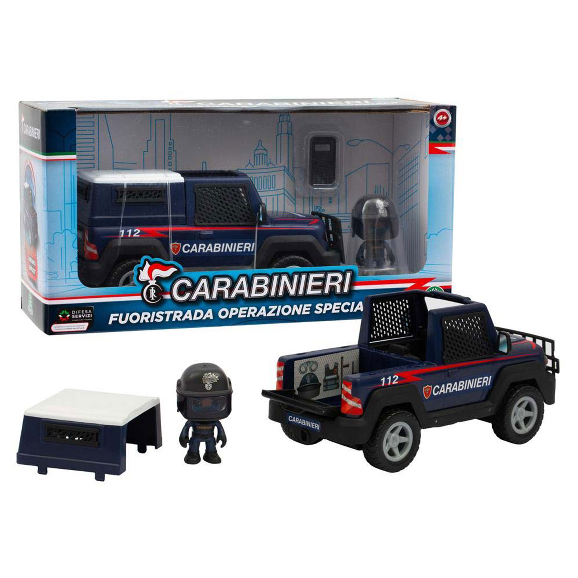 JEEP A RUOTA LIBERA CON LIVREA ORIGINALE E PERSONAGGIO ARTICOLATO ALTO 7 CM CON UNIFORME DEI CARABINIERI DEL 1 REPARTO MOBILE, ACCESSORI INCLUSI