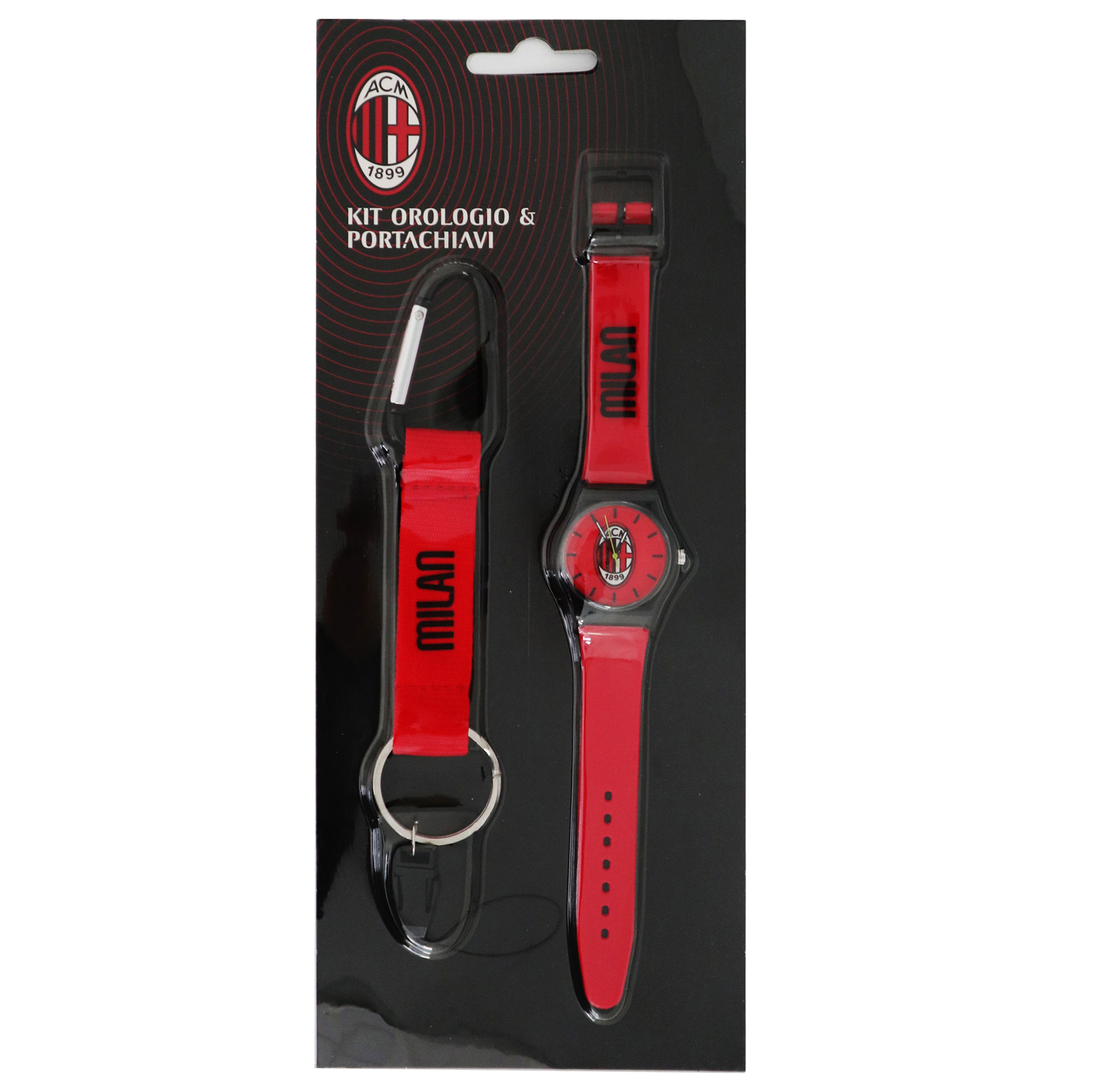 Kit ufficiale AC Milan con orologio da polso e portachiavi in tessuto con moschettone.