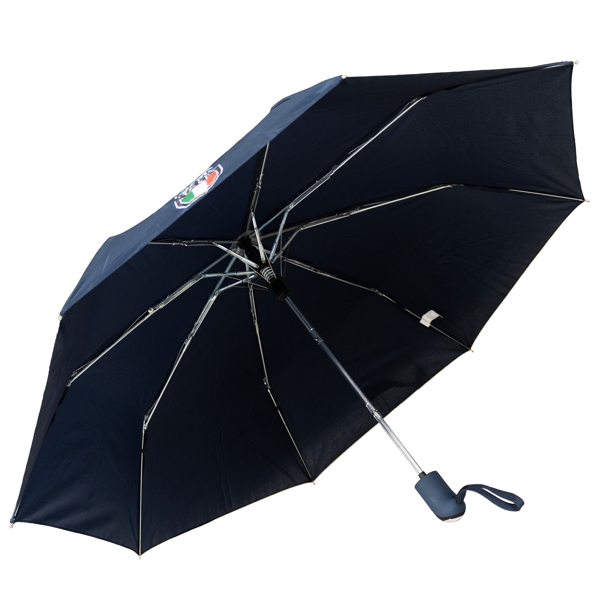 OMBRELLO ITALIATEAM AUTOMATICO TASCABILE BLU SCURO DIAMETRO 96CM LUNGEZZA 30-52CM STECCA IN METALLO 3 PARTI, RAGGI E PUNTE IN METALLO, MANICO GOMMATO, RIVESTIMENTO E CUSTODIA IN POLIESTERE-PONGEE LOGHI OLYMPIC EMBLEMA BIANCO E SCUDO ITALIA TEAM BIANCO+TRICOLORE