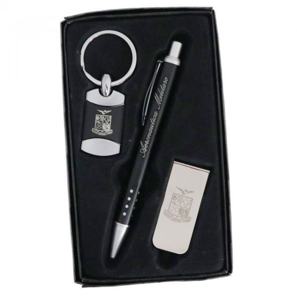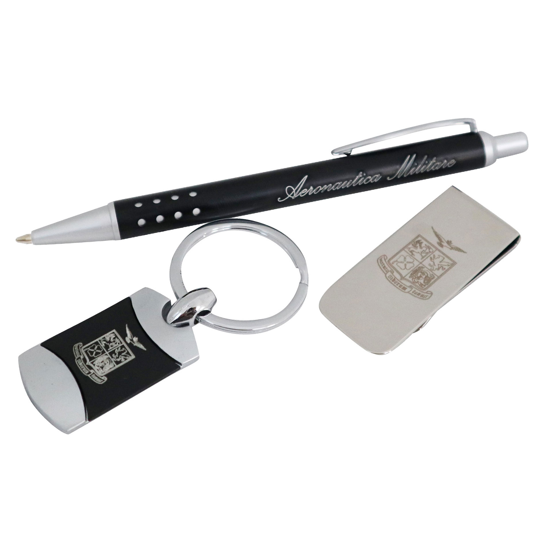 SET PENNA IN METALLO, PORTACHIAVI E FERMASOLDI INCISO