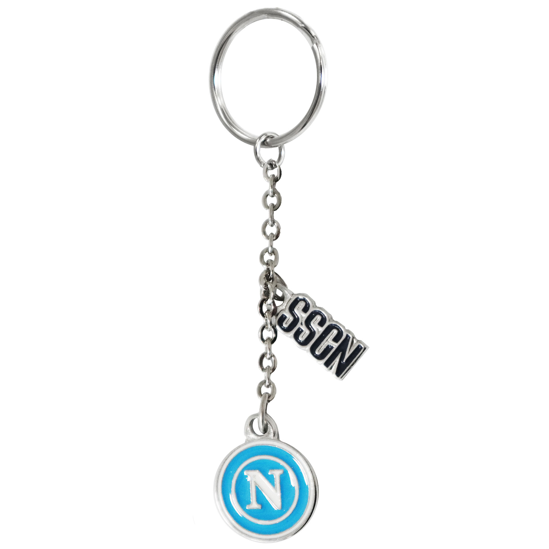 PORTACHIAVI SMALTATO LOGO BIANCO SU FONDO CELESTE CON CIONDOLO SSCN SAGOMATO
