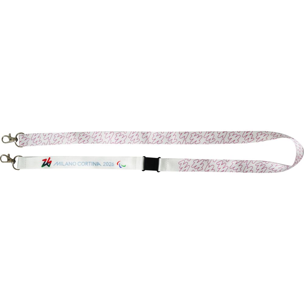 PORTAPASS OLIMPIADI MILANO CORTINA 2026 CON BUSTINA NASTRO DA 20 MM LOGO PARALYMPIC EMBLEMA COLORATO SU FONDO SIGN CON DISPOSITIVO ANTISOFFOCO SENZA FIBBIA SEPARABILE