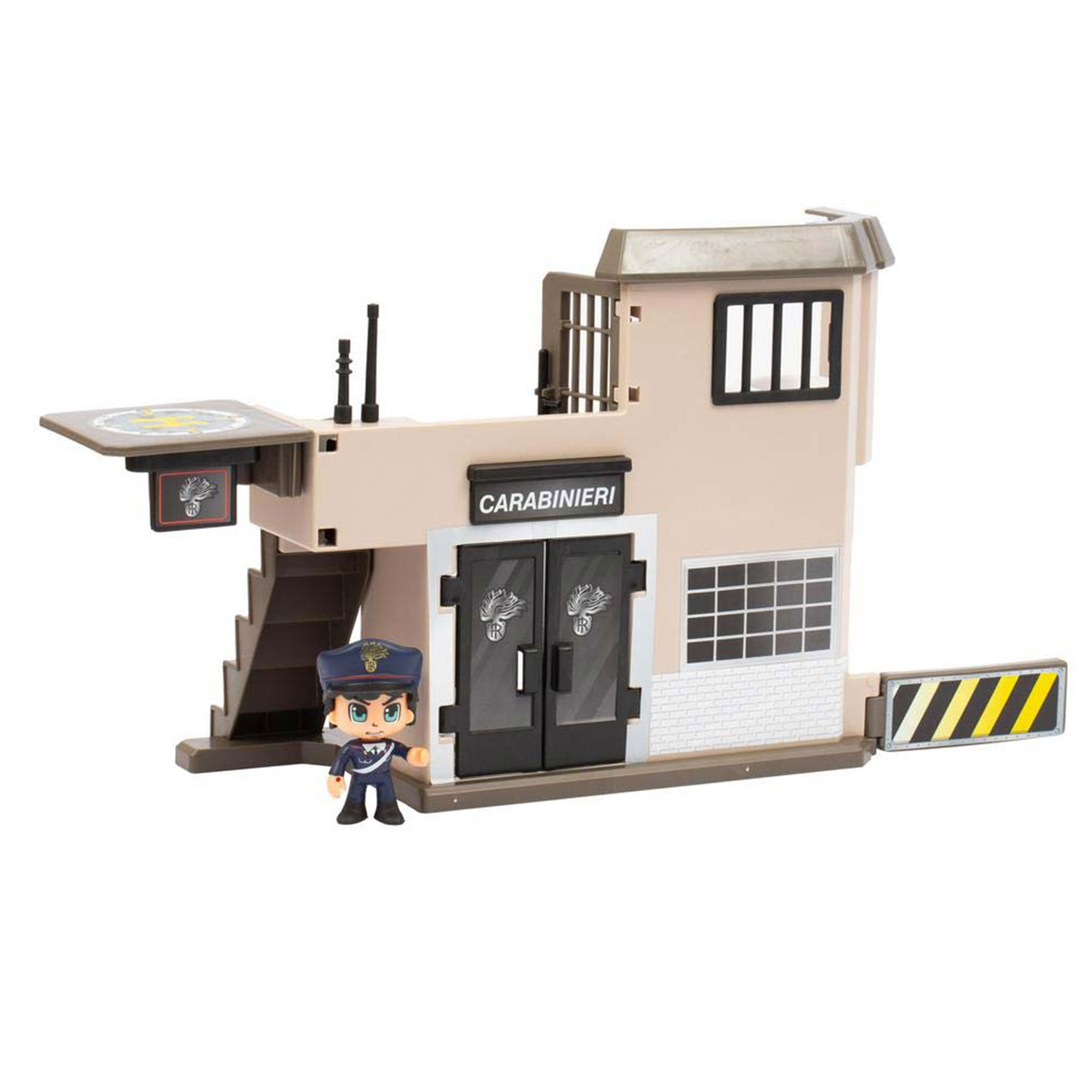 STAZIONE OPERATIVA CON DUE PIANI E GIOCABILITA' SULLA PARTE ANTERIORE E POSTERIORE, SCALA PER RAGGIUNGERE I DUE LIVELLI, PORTA APRIBILE E CELLA, ALL'INTERNO DELLA CONFEZIONE PERSONAGGIO ARTICOLATO ALTO 7 CM CON ACCESSORI