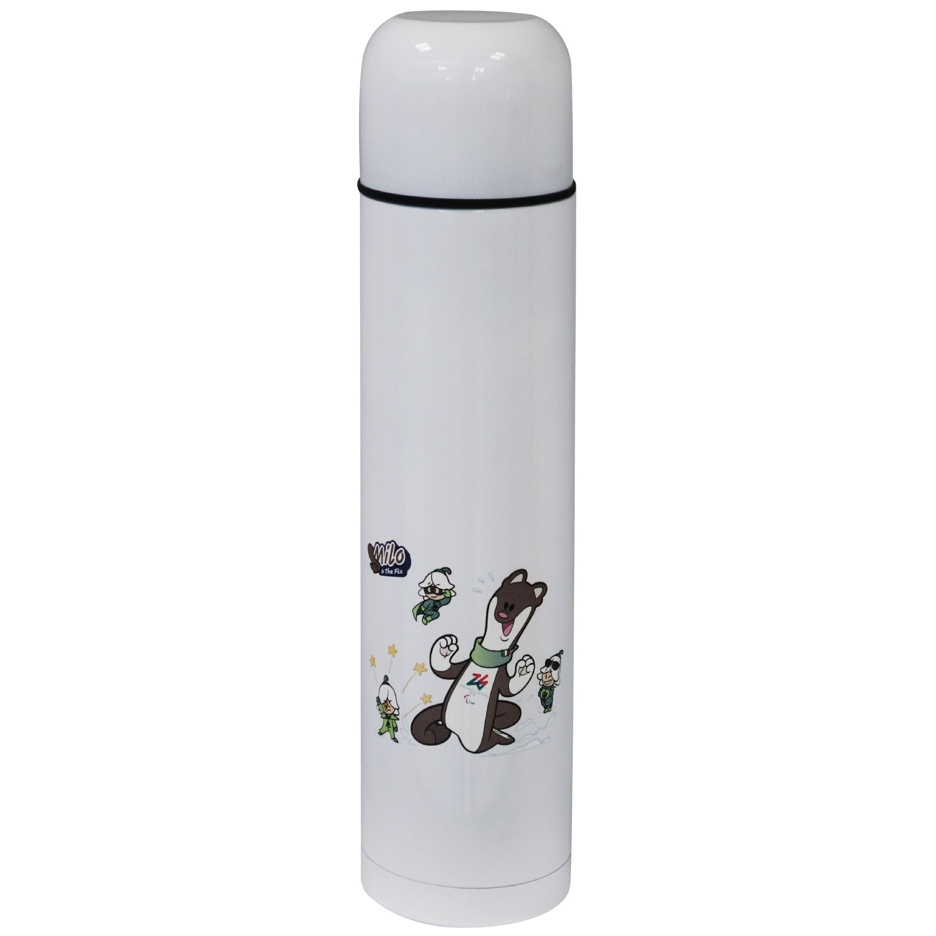 THERMOS ACCIAIO INOX BIANCO 1 LT. PARALYMPIC MASCOT MILO COLORATO STAMPA