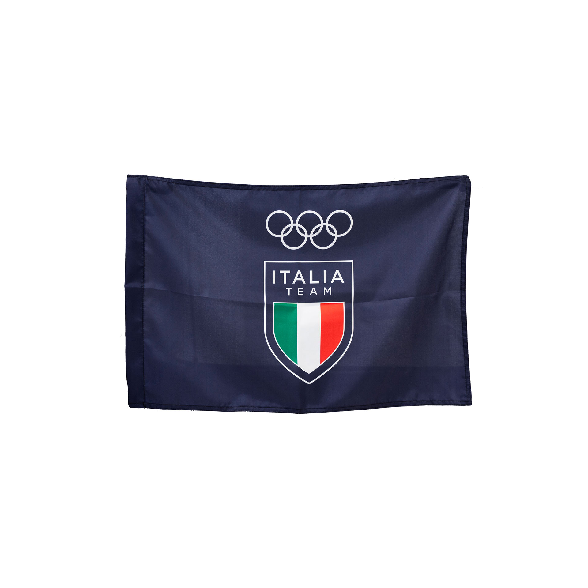 BANDIERA IN POLIESTERE 70X50CM SENZA ASTA FONDO BLU OLYMPIC+ITALIA TEAM